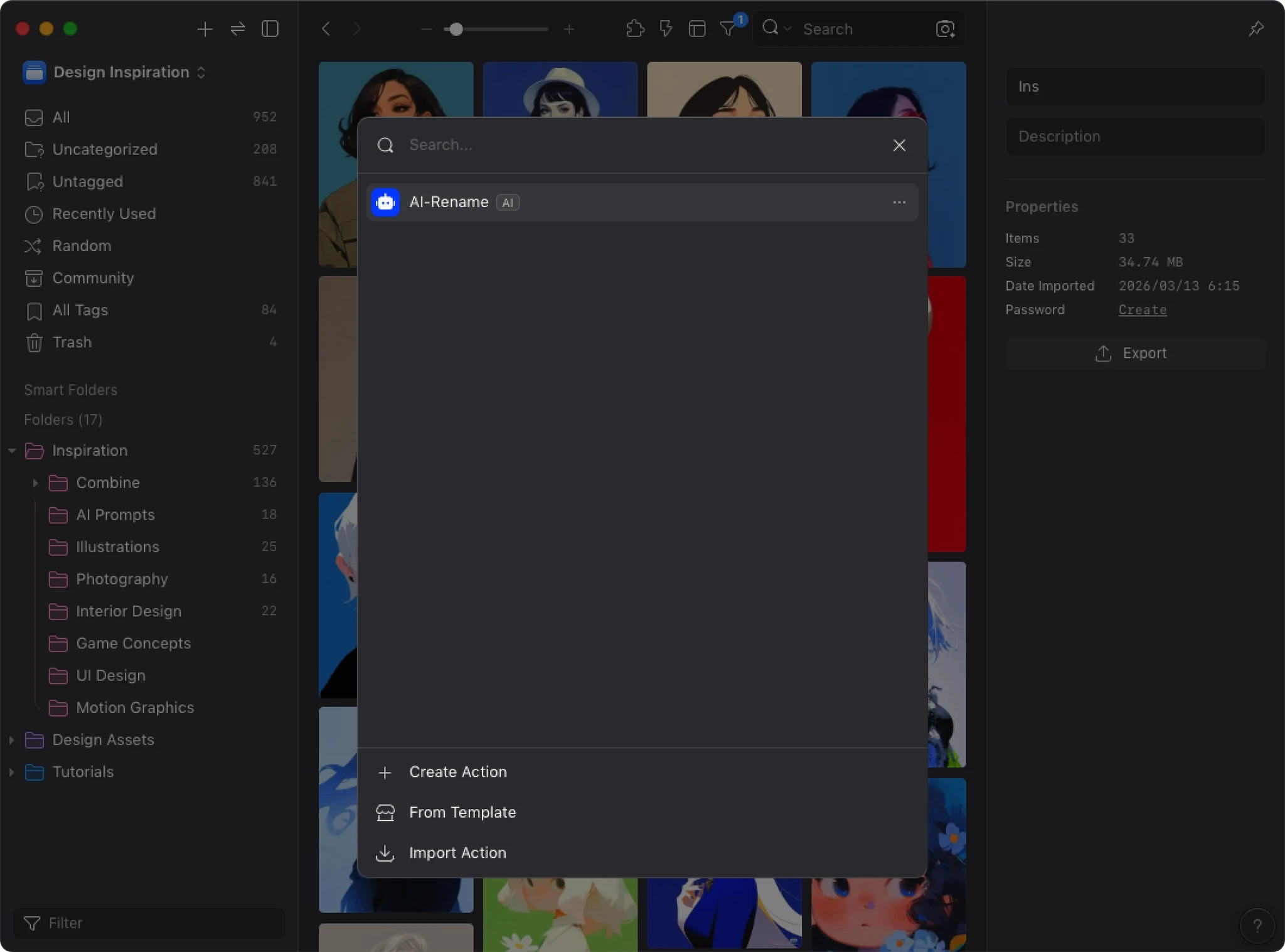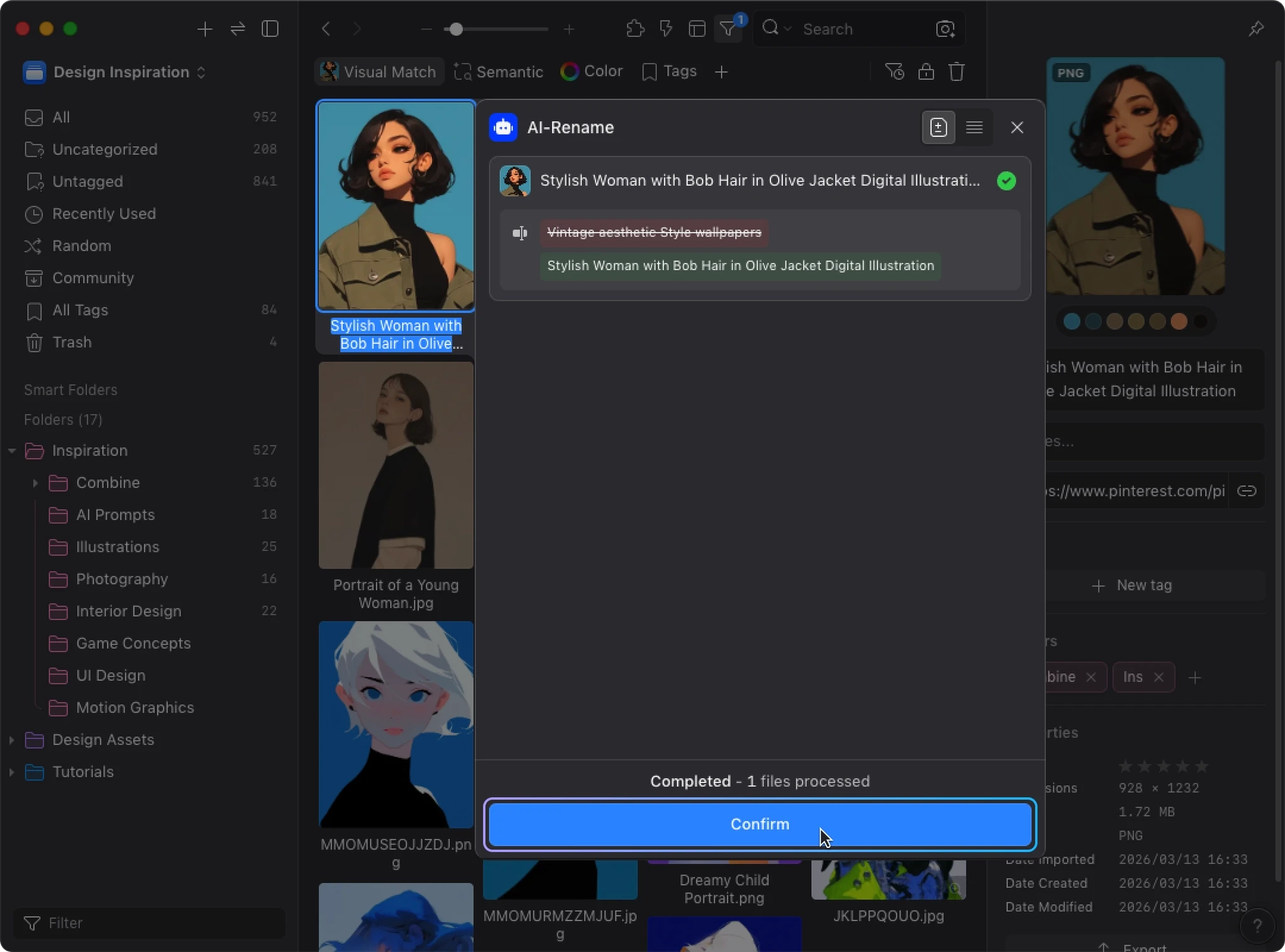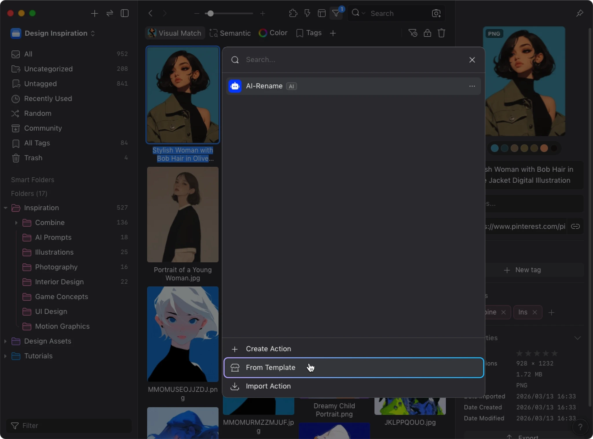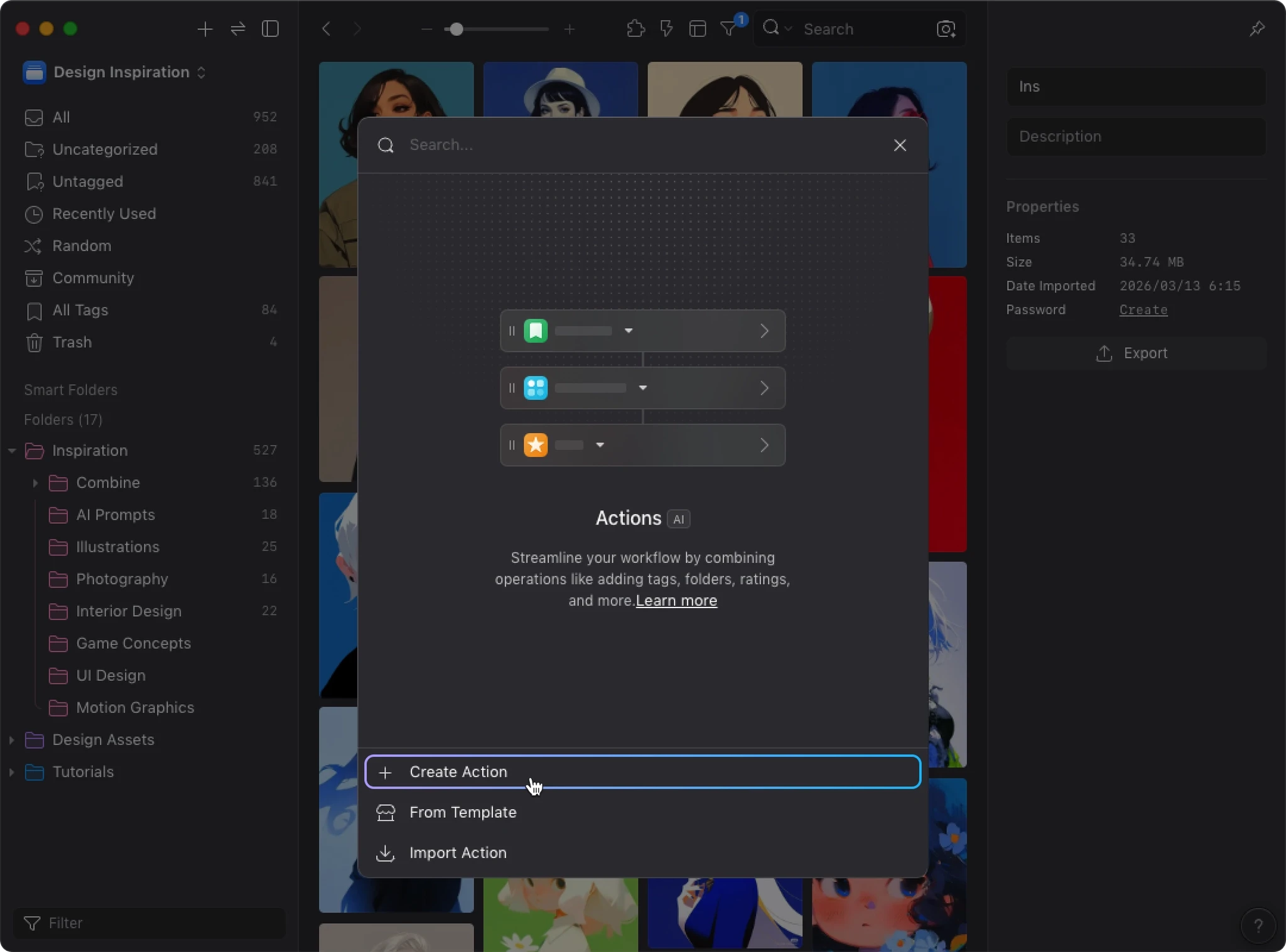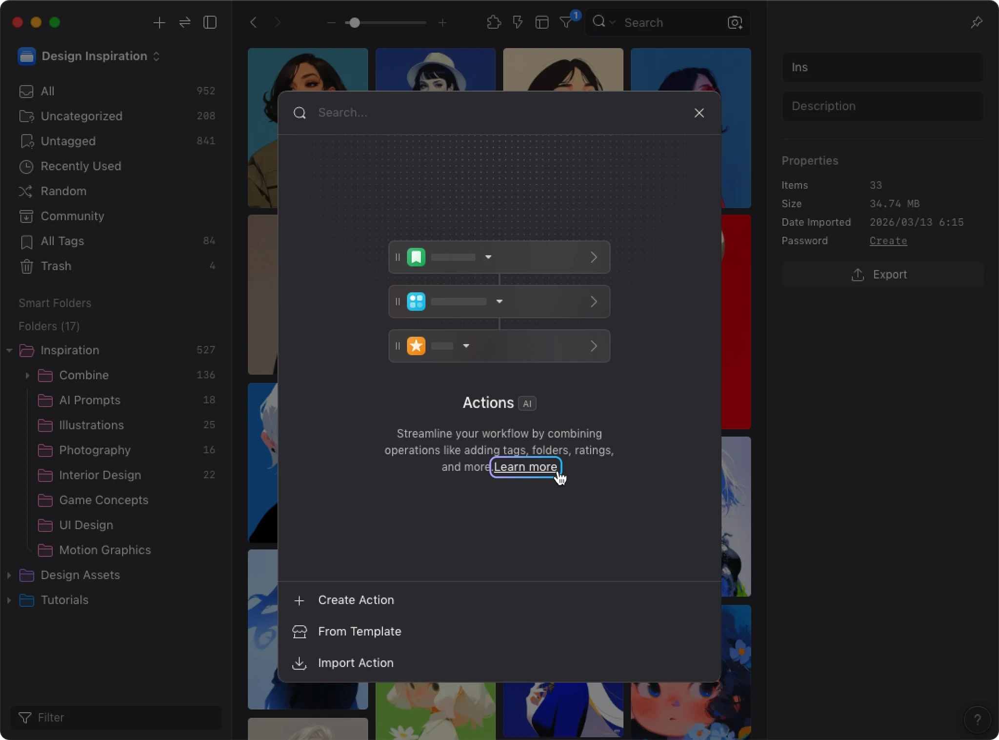 AI Search builds a visual similarity index for your library. When AI Action detects this data, it uses visual similarity and your existing organization to improve tagging and sorting accuracy. Instead of analyzing each image in isolation, AI can reference how you’ve already organized similar images.