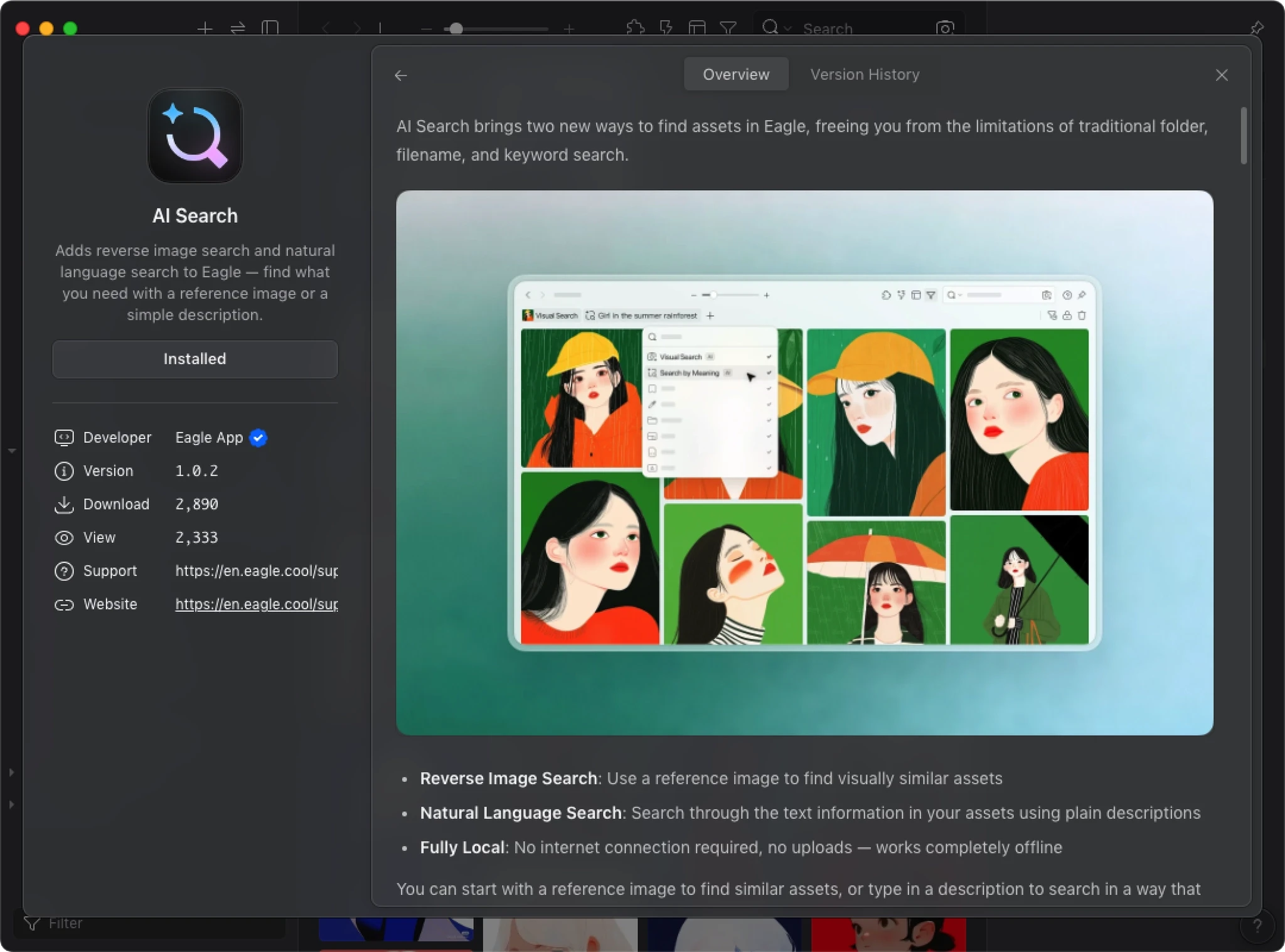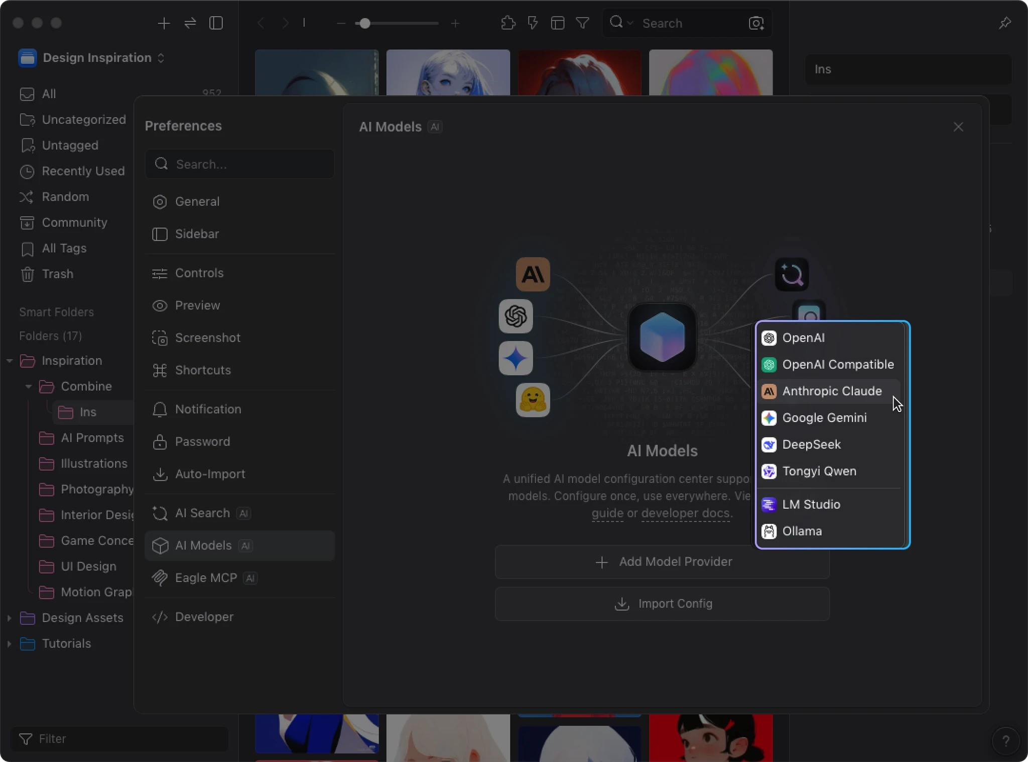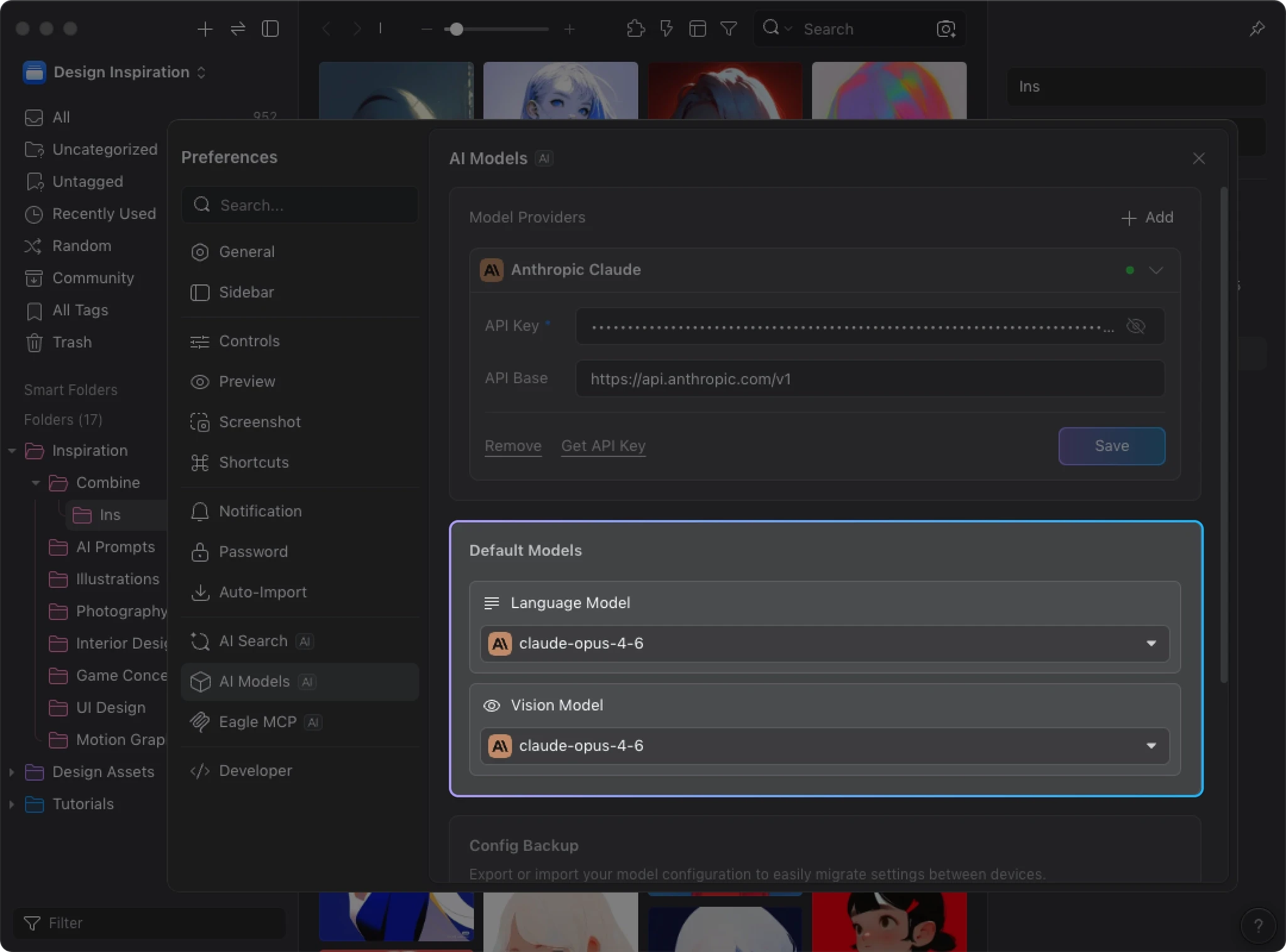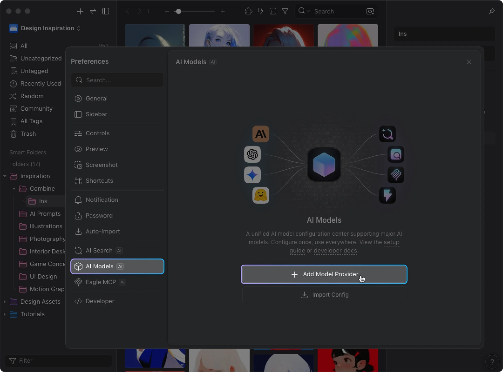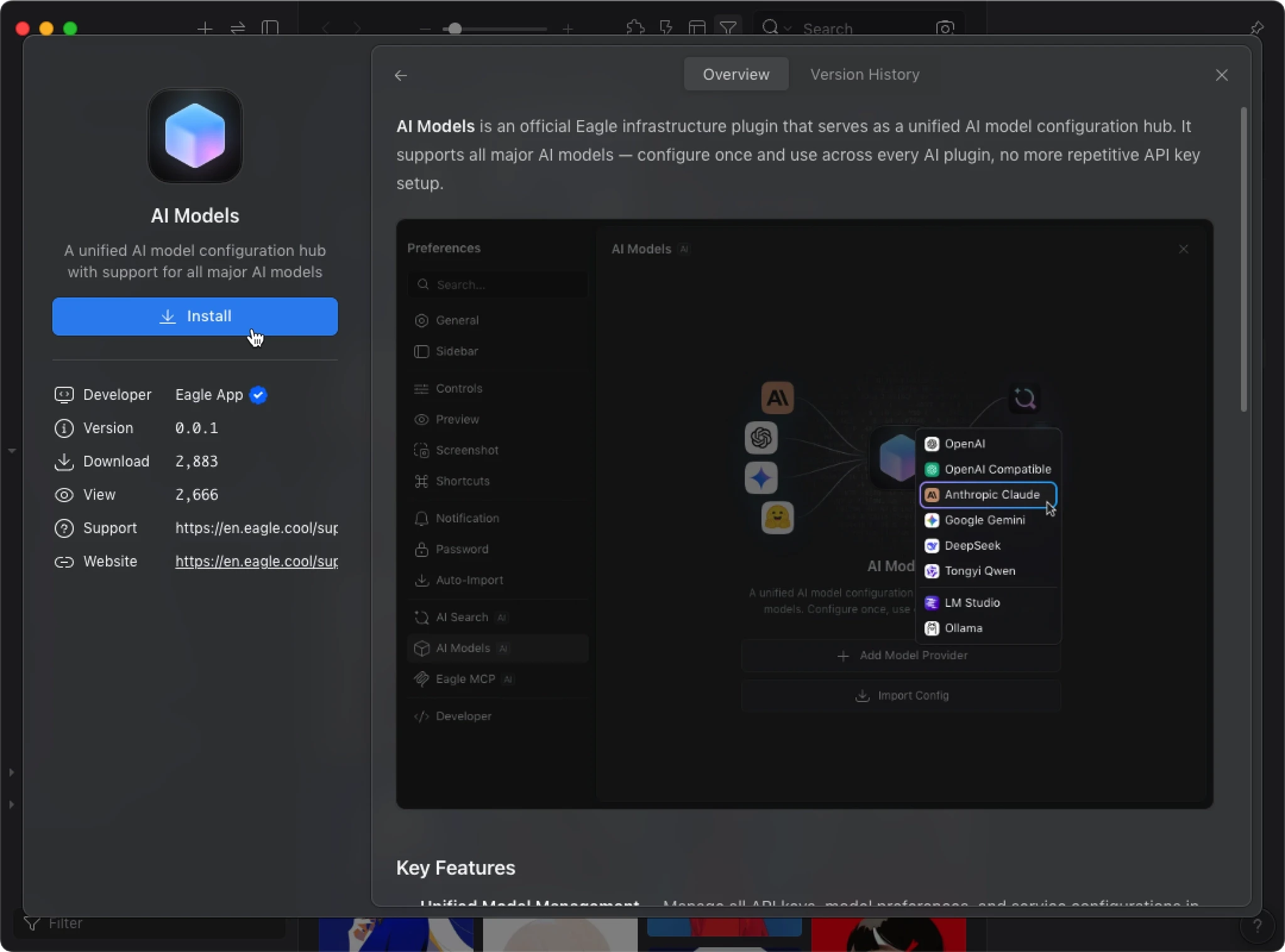 AI Action handles the workflow execution, but the actual image analysis is powered by AI models. The AI Models is Eagle’s unified model configuration center. Install it once, and all AI plugins share the same setup. You need to configure the AI Models before AI Action can work.
