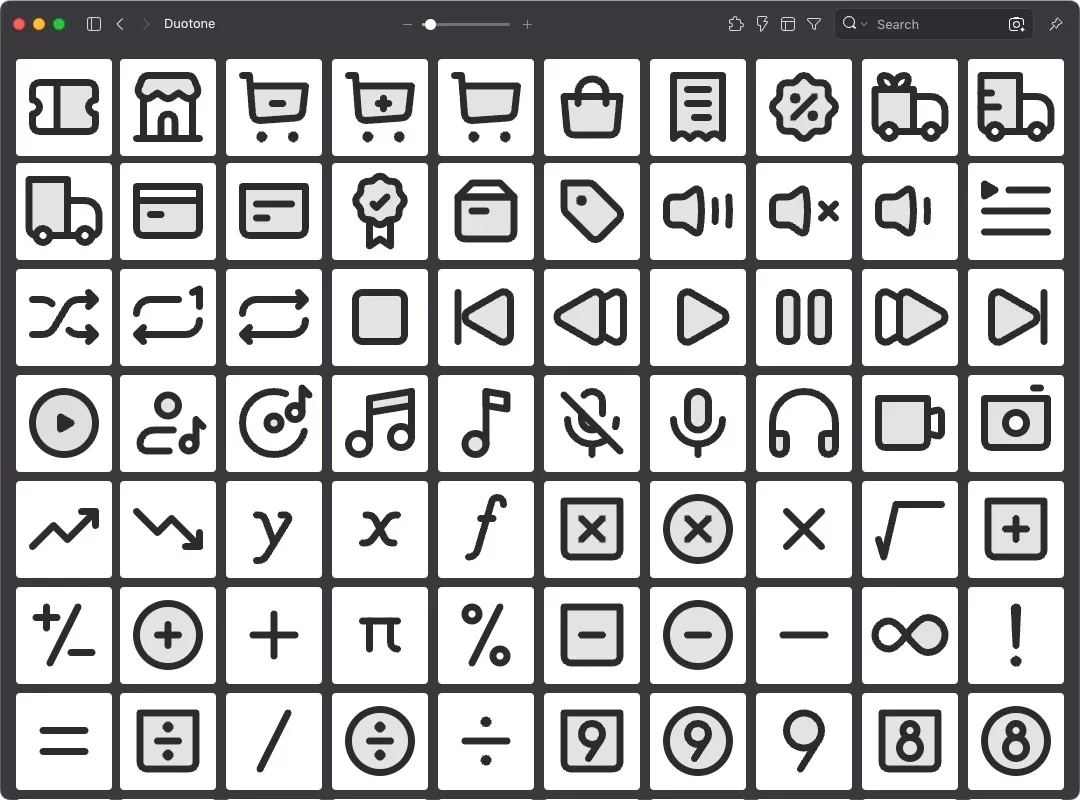 IconaMoon is an open-source icon library independently built by Iranian designer Dariush Habibpour. Every icon is drawn on a precise 24×24px grid using simple geometric shapes — rectangles, circles, and lines — ensuring visual consistency, balanced proportions, and crisp rendering at any size. Licensed under CC BY 4.0, it's free for both personal and commercial use, with full permission to edit, adapt, and remix. Just credit the original creator, Dariush Habibpour, and you're good to go.