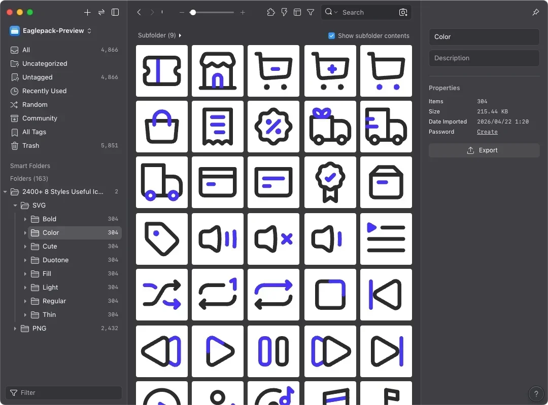 What sets IconaMoon apart is having 8 style variants for every single icon — so you can match the right look to any interface or brand without ever mixing icon sets again. Download the Eaglepack now and drop it straight into your design workflow in one click!